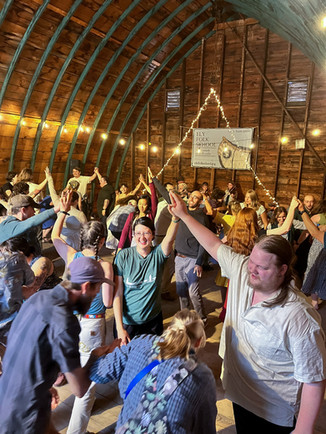 Ely Folk School community contra dances bring together live music, traditional dancing, and the joyful gathering of friends and neighbors! All dances are taught live, so people of all ages and skill levels can participate. Our favorite thing about our dances is taking a moment to look across the dance floor and see the families, couples of all ages, and friends all joyfully figuring out the dance steps together.